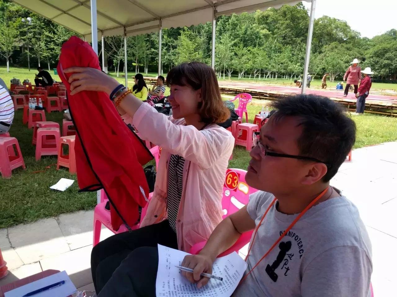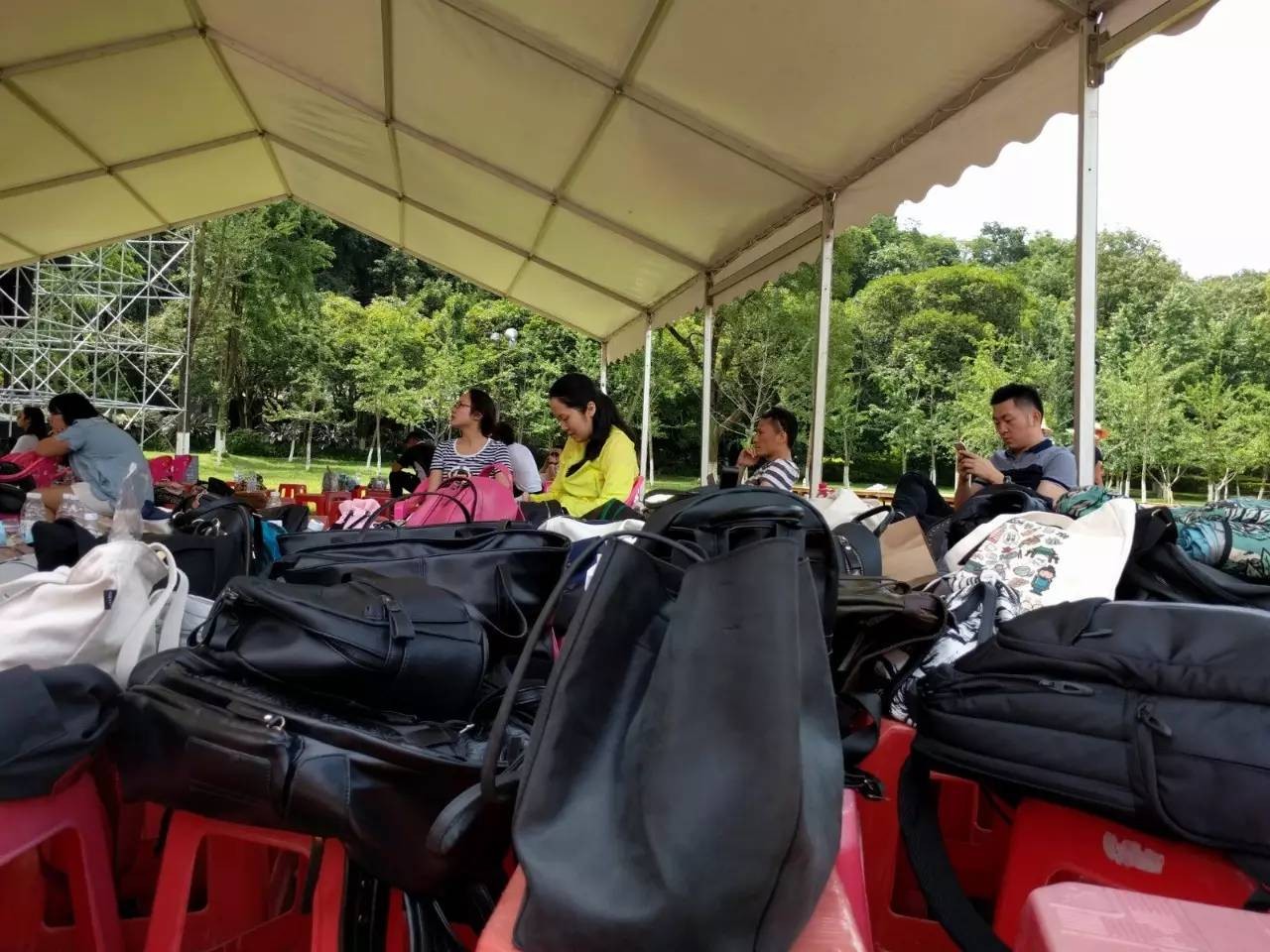 贴心的道具组给现场的演职人员搭起了帐篷,让大家在排练之余也能享受片刻的清凉。