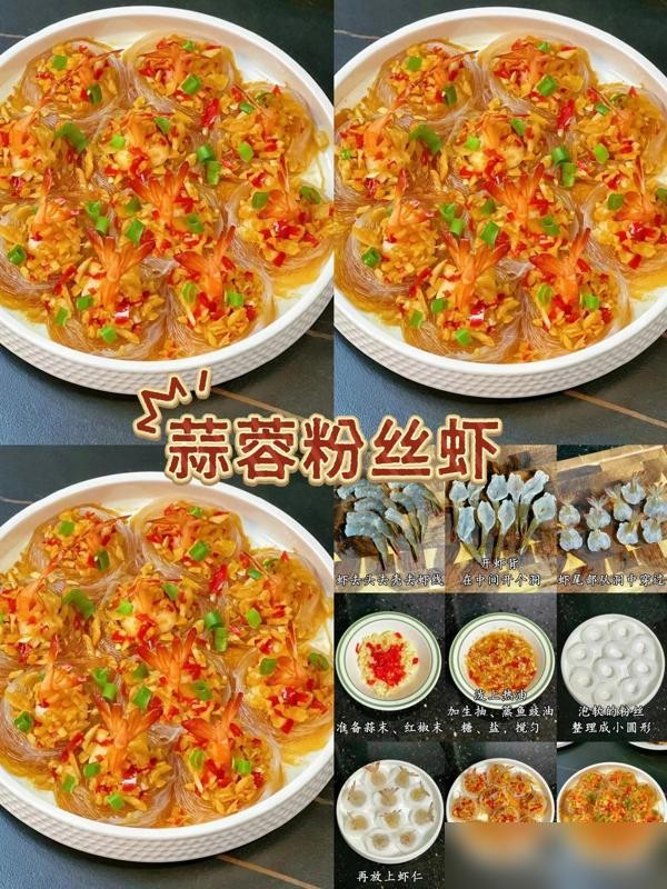 做法:将虾去壳,留虾头和虾尾,将虾肉剁成泥,加入盐、胡椒粉、生姜蒜末,搅拌均匀,腌制片刻。将虾头炸至金黄色,捞出沥油,之后用虾肉泥填充,形状如花朵,放入蒸锅蒸熟,出锅后撒上香葱点缀即可。