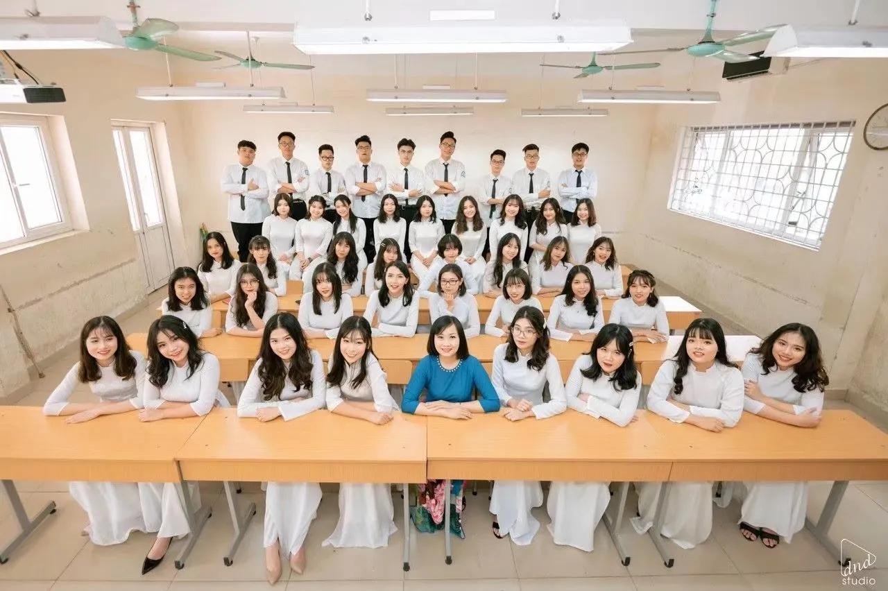 每逢周一,你就能看到大街上穿着白色奥黛的仙女们,骑着自行车在街上飘过~学生是必须穿统一白色的,放两张我侄女的毕业照,如下: