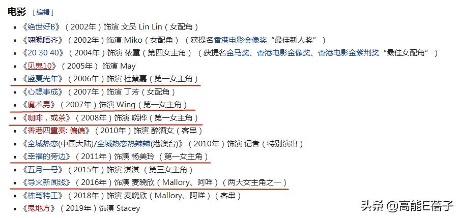 2007年获得由香港电台主办,香港电影金像奖协会协办的“香港特区十周年电影选举”提名最具潜质女演员。