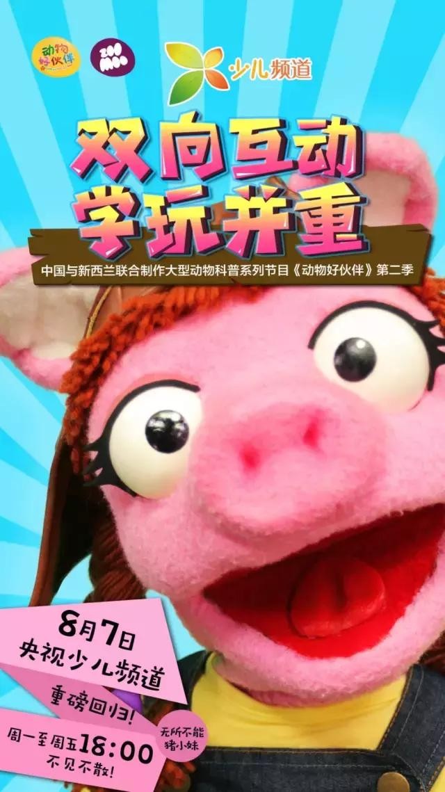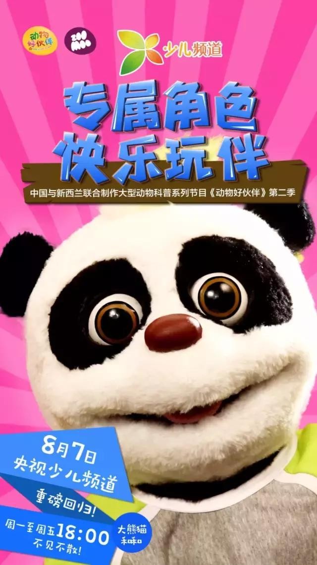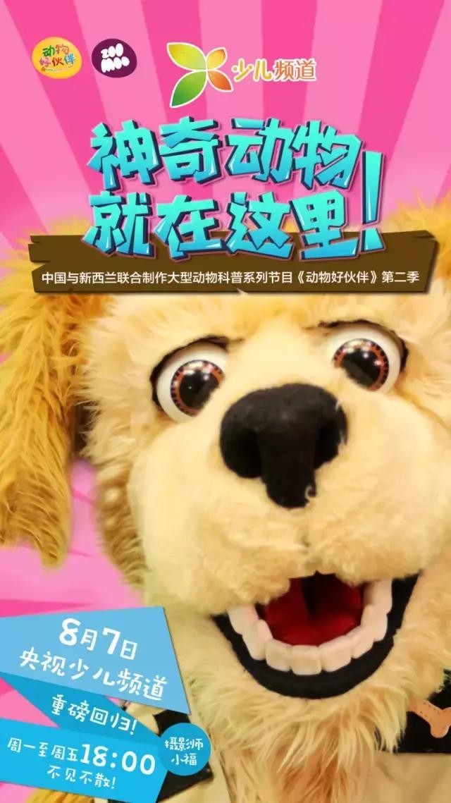 8月7日起每周一至周五18:00,广受好评的互动性动物科普节目《动物好伙伴》第二季在央视少儿频道强势回归,重装上阵啦!可爱玩偶、萌趣动画、益智故事、互动小游戏、好听又好学的动物歌曲,让萌宝们边玩边学,玩转暑期!