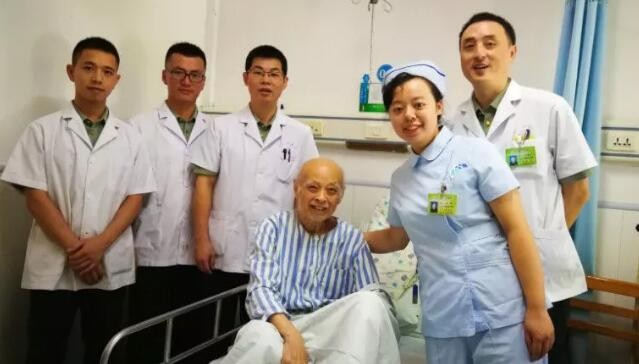 ▲为挽救95岁老人的性命,11名救治他的军医为老人献血(资料图)
