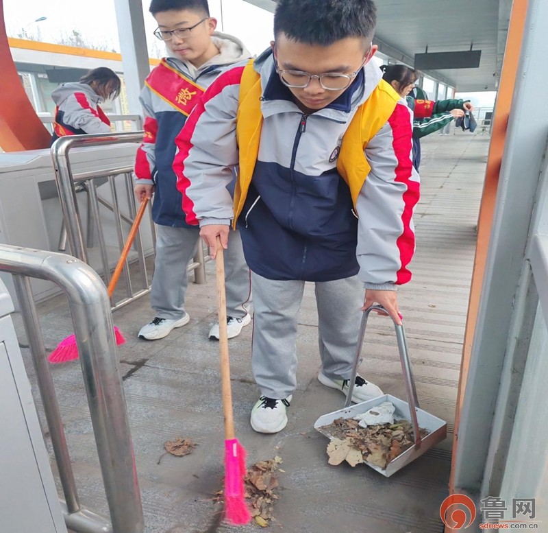 在打扫完校园周边环境后,同学们又来到了车站站牌和 BRT 站台。在这里,他们不仅继续进行清洁工作,还积极开展文明宣传活动。有的同学认真擦拭站牌和站台的玻璃、座椅,让这些公共设施一尘不染。