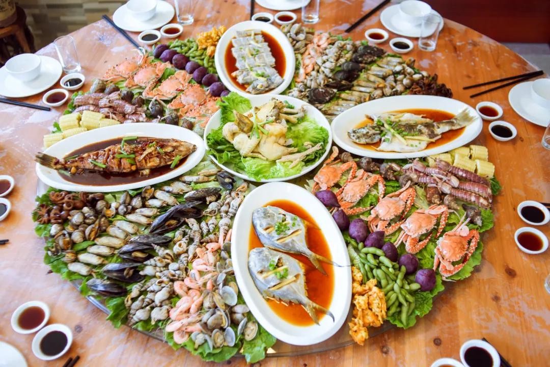 象山以海鲜闻名,当地人说,象山当属茅洋的小海鲜最特别,可以说是鲜中之鲜,烹饪特色也以清蒸、葱油等保留食材特色的方法为主。近年来,茅洋老百姓更是创意十足地把各式海鲜做成大拼盘。鲳鱼、小白虾、香螺、梭子蟹,玲琅满目,你对海鲜的所有幻想,一次满足。各种小海鲜,令人食指大动。也因为海鲜铺满整张桌,所以这顿海鲜大餐有个特别的名字——茅洋无边际海鲜大餐。