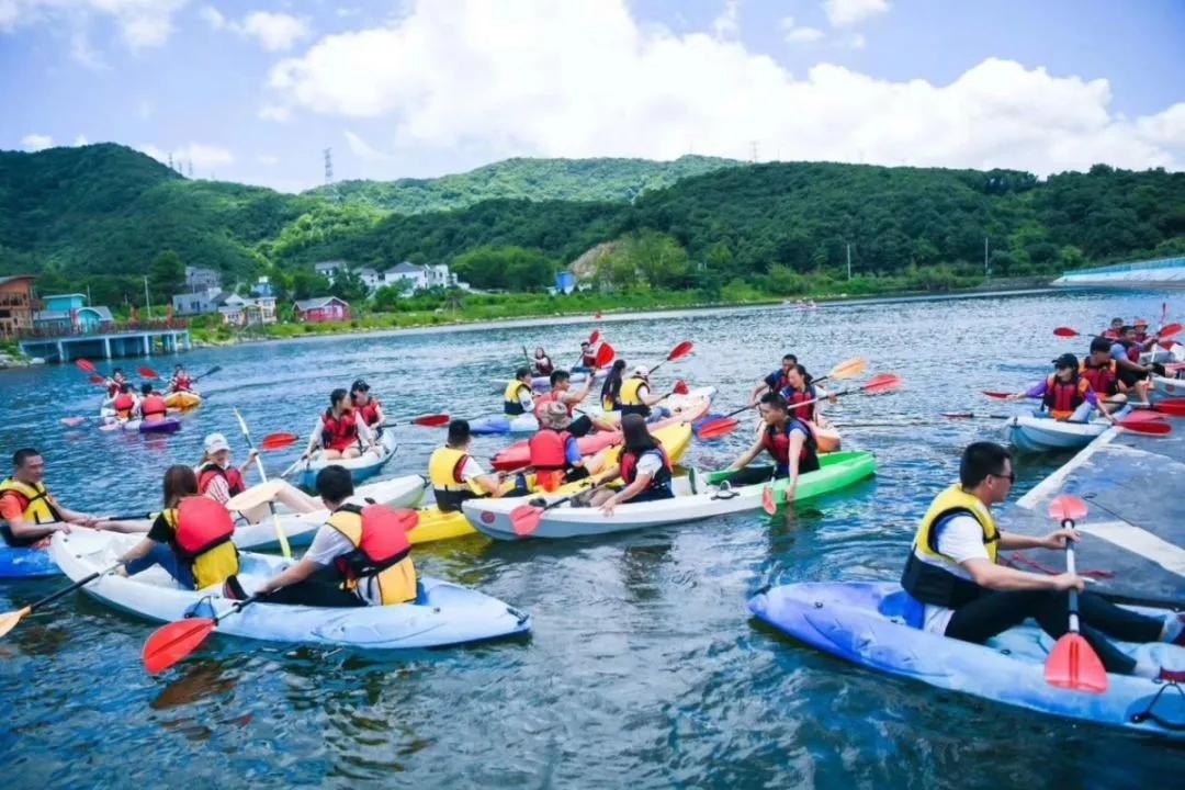 皮划艇是继高尔夫之后又一项健康、自然、时尚、环保的高端的户外有氧健身运动。风平浪静时,体验顺畅划过水面的快感。水上皮划艇接力,可以看看哪个小组配合的最好!