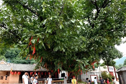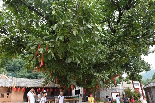 千年古核桃树:这棵树的位置是电视剧《初婚》的主景区,树龄据说“上千年”,树冠大而出名,树主干高仅有2米左右,但树的胸茎周长却有7米,需四五人环抱,就是其分枝也得二三人环抱,树冠直径约30米,东南西北四个方向有四大枝,其东南大枝横向伸出有近20米,犹如巨大的臂膀在向游人招手,整棵树枝叶繁茂,形成硕大树冠,遮阴半亩。这核桃树长在村中心,树下是村民祖祖辈辈午休纳凉的天然场所,在这里发生的故事励志而美好。在这充满神奇的大树庇护下,王村人才辈出,所以树产核桃有“状元果”之称,每年核桃成熟季节,人们都聚在树下捡核桃,吃核桃,经常会在学生入学或临考时赠送“状元果”,祝愿其智商高颖、考取功名。古树年代久远,庇护着一方水土风调雨顺,所以也是非常有名的“许愿树”,每到初一、十五人们在祈福带上写下自己的心愿,系在树上,向千年古树虔诚的许下自己的心愿,祈祷健康、平安!古核桃树远近驰名,正是这棵树的魅力,让丫丫影视公司以树为主景,把王村确定为影视基地,拍摄了农村题材电视剧《初婚》。