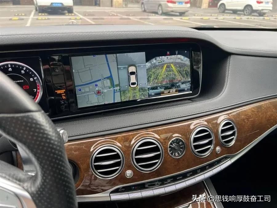 值得注意的是,奔驰s65的识别特征是换掉了那块手写板,反而是一块完整的胡桃木,把原本手写板的位置给覆盖住了。也就是说不支持触屏,但是它的下方有一个旋钮来控制屏幕上的所有功能,旋钮的中间是触摸式的。这台车并不支持全屏触摸。