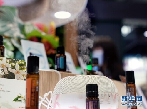 11月8日,多特瑞展台上的香薰机中飘散出阵阵芳香。新华社记者 刘颖 摄