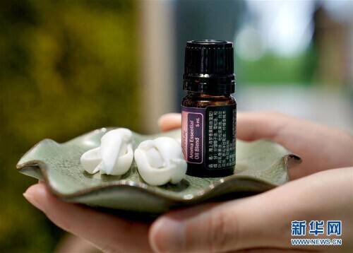 11月8日拍摄的多特瑞在第三届进博会上的首发新品——“海上寻梦”香薰复配精油。新华社记者 刘颖 摄