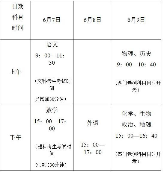 经教育部批准,江苏省全国统考科目、学业水平测试选测科目考试时间为6月7、8、9日。