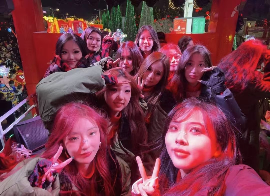 音乐响起,小姐姐们瞬间舞动起来,动作整齐划一,活力四溢。