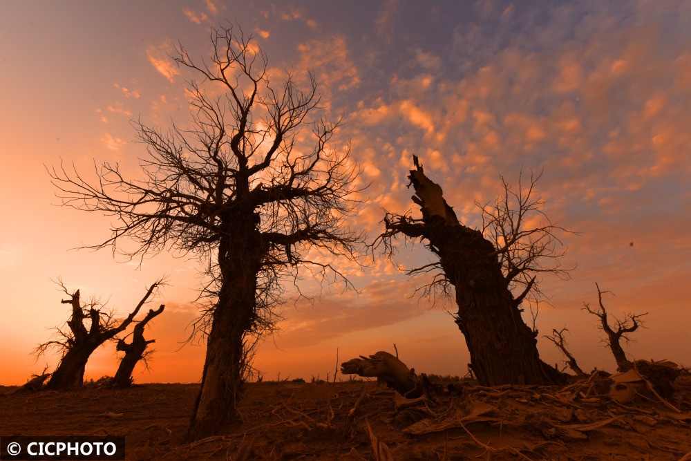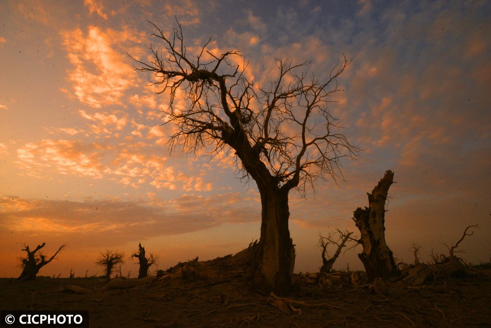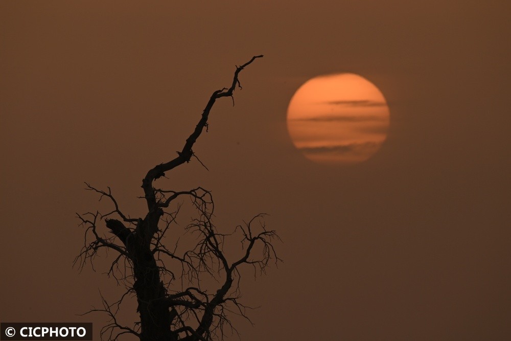 以上图片:2022年6月21日在新疆维吾尔自治区塔里木盆地边缘的轮台县拍摄的胡杨。CICPHOTO/确·胡热 摄