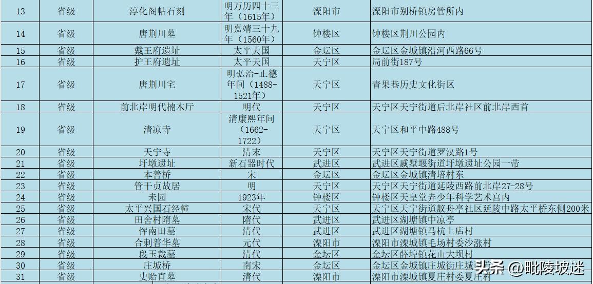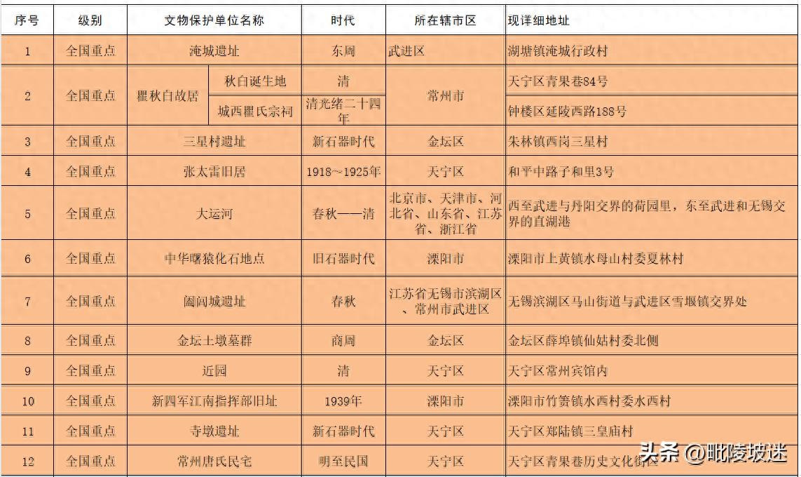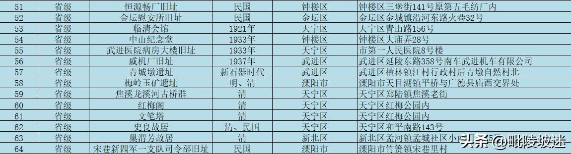 常州市文物保护单位名录(含国家,省级,市级)