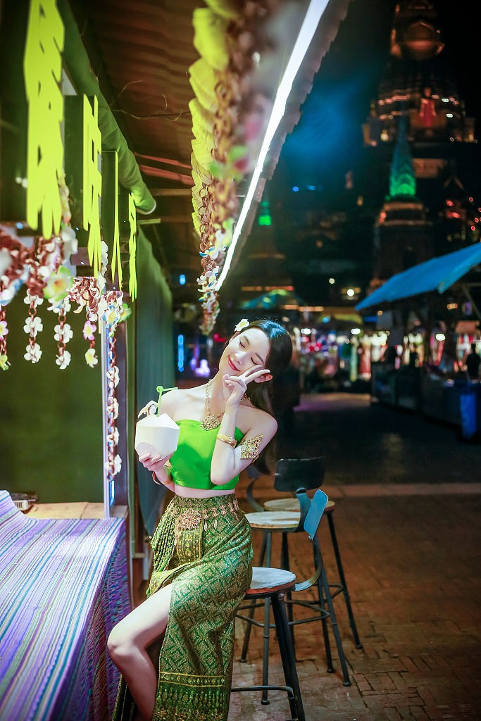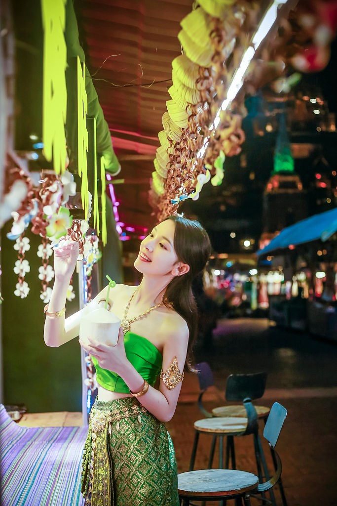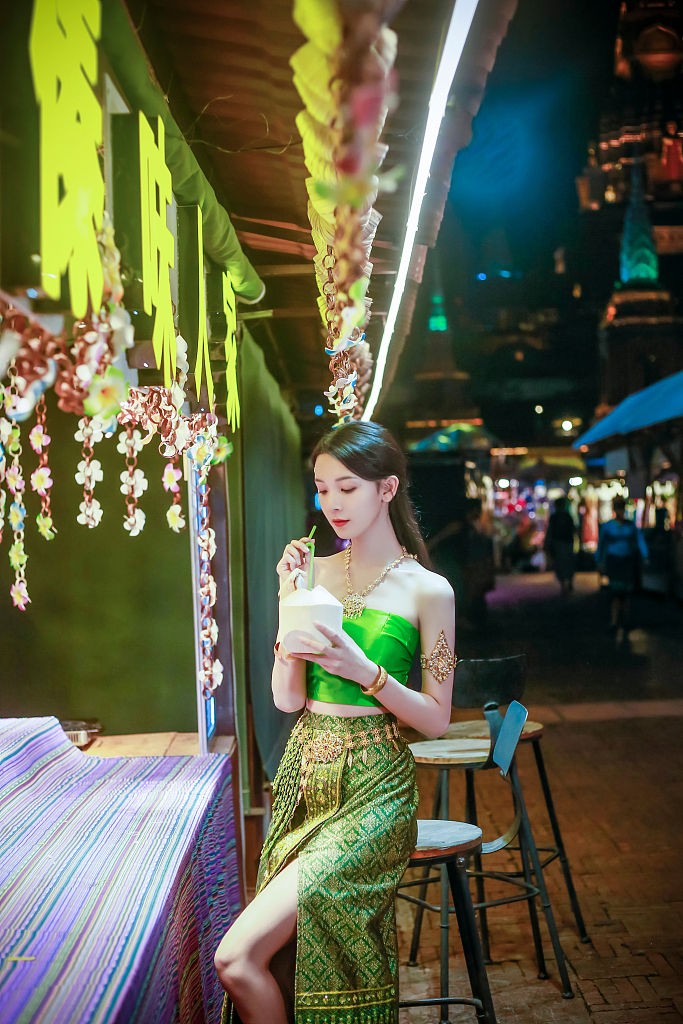 陈瑶傣族服饰大显窈窕身材。