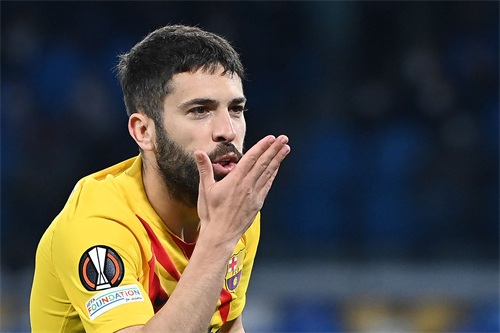 2月24日,巴塞罗那队球员阿尔巴庆祝进球。 新华社/法新