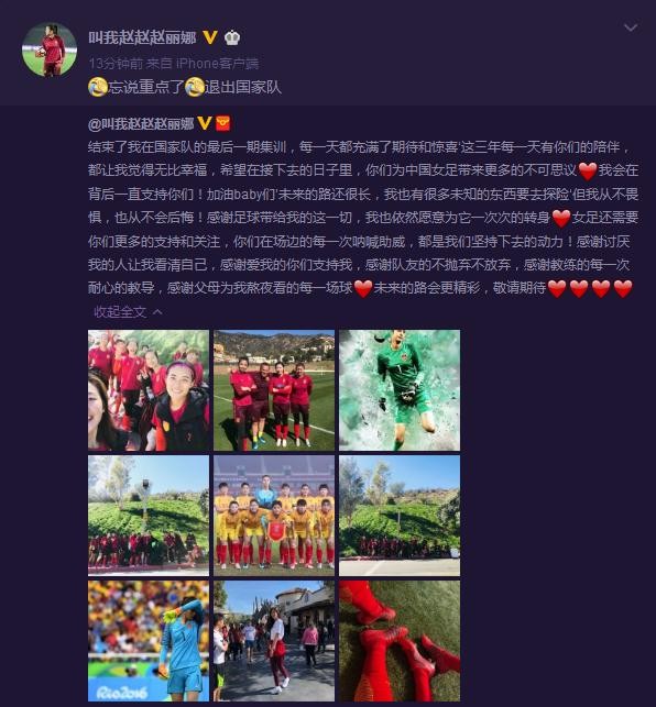 随后她又补了一句:“忘说重点了,退出国家队。”