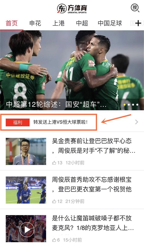 值此机会,东方体育APP为广大球迷奉上福利。只要你下载“东方体育APP”,并转发本条福利贴即有机会获得7月21日上港VS恒大的球票!