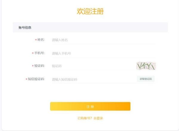 3) 输入“姓名”、“手机号”、“验证码”、“短信验证码”完成注册