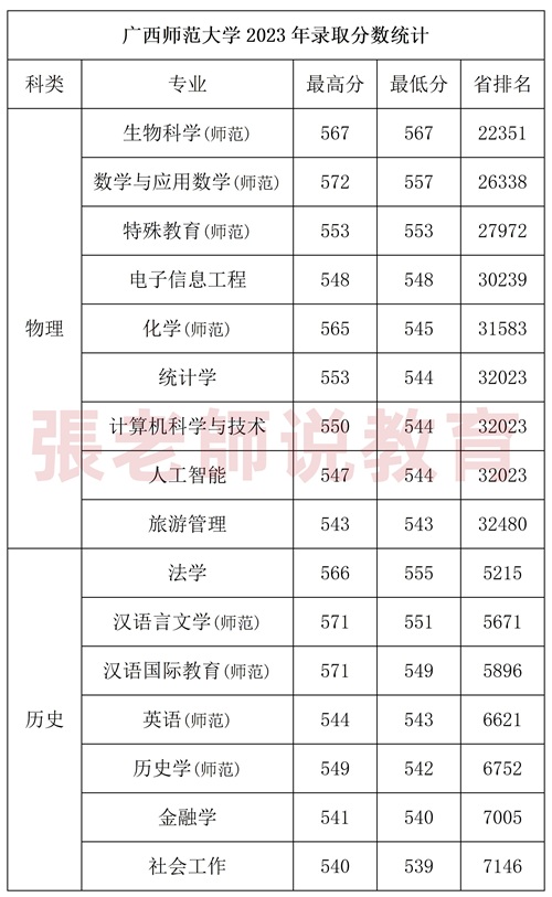 最高分572!广西师范大学2023年录取分数统计