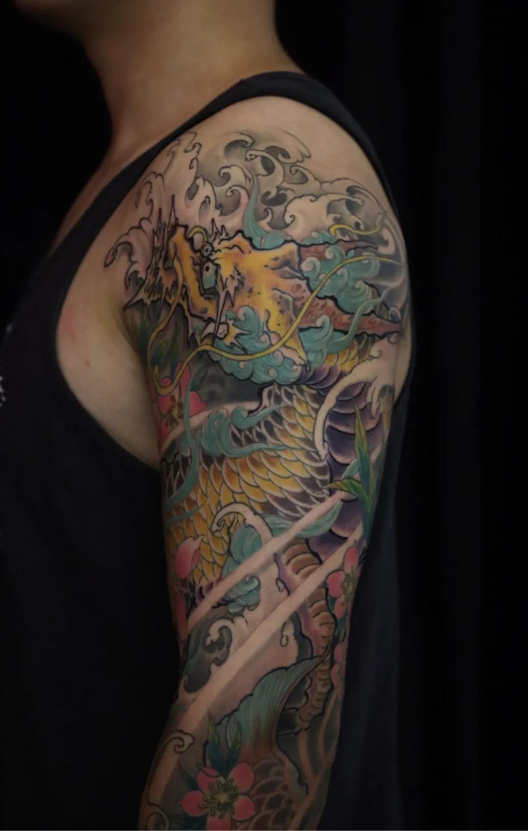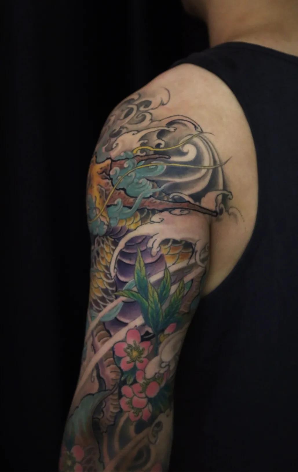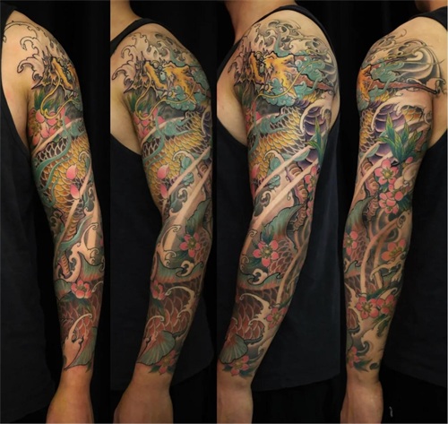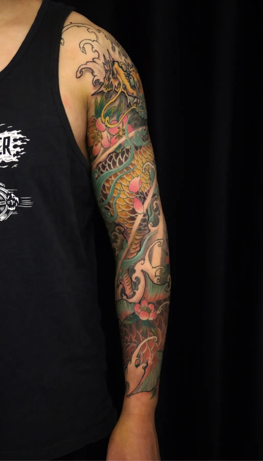 麒麟鲤鱼花臂纹身