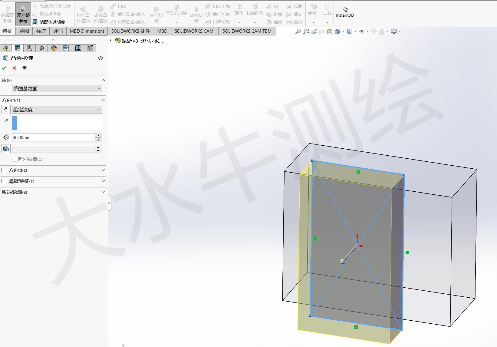 选中装配体零件的其中一面作为基准面,对新零件开始绘制。就像绘制普通零件一样。