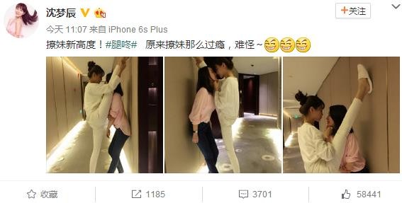 沈梦辰微博爆图腿咚女闺密,攻气十足,掀起撩妹新高度!