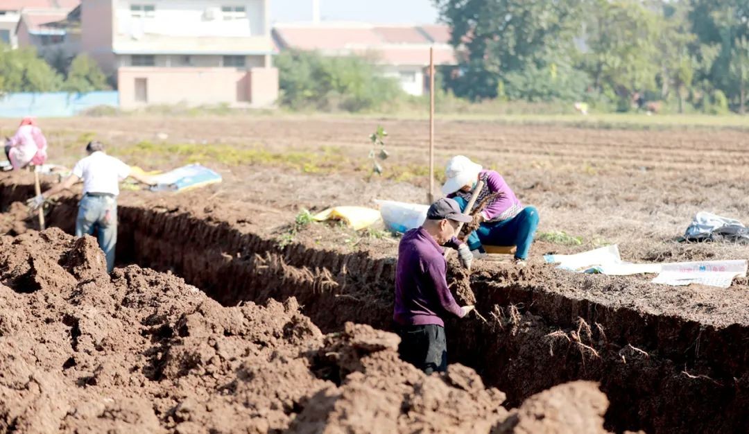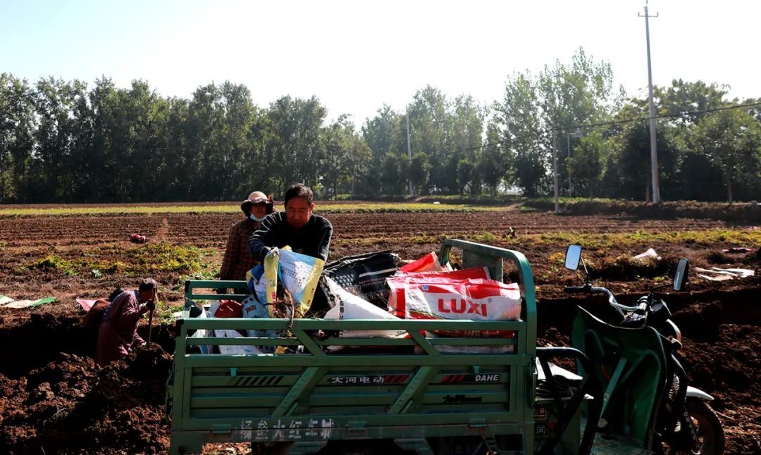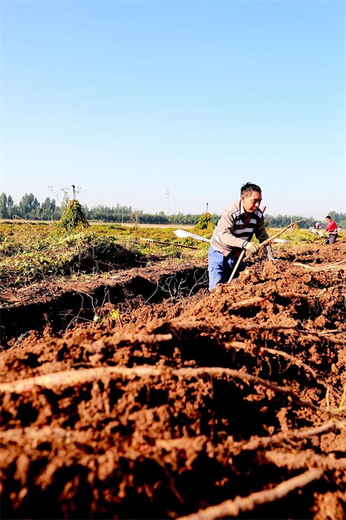 霜降时节,铁棍山药进入收获旺季,温县种植户利用晴好天气采挖山药。