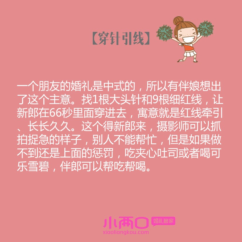 你见过最有创意的伴娘团是怎么堵门折腾新郎伴郎的?如果还不知道有哪些“手段”,管家酱搜罗了一堆超实用、有创意的点子,mark起来吧!不能和新郎愉快玩耍了,嘻嘻哒~