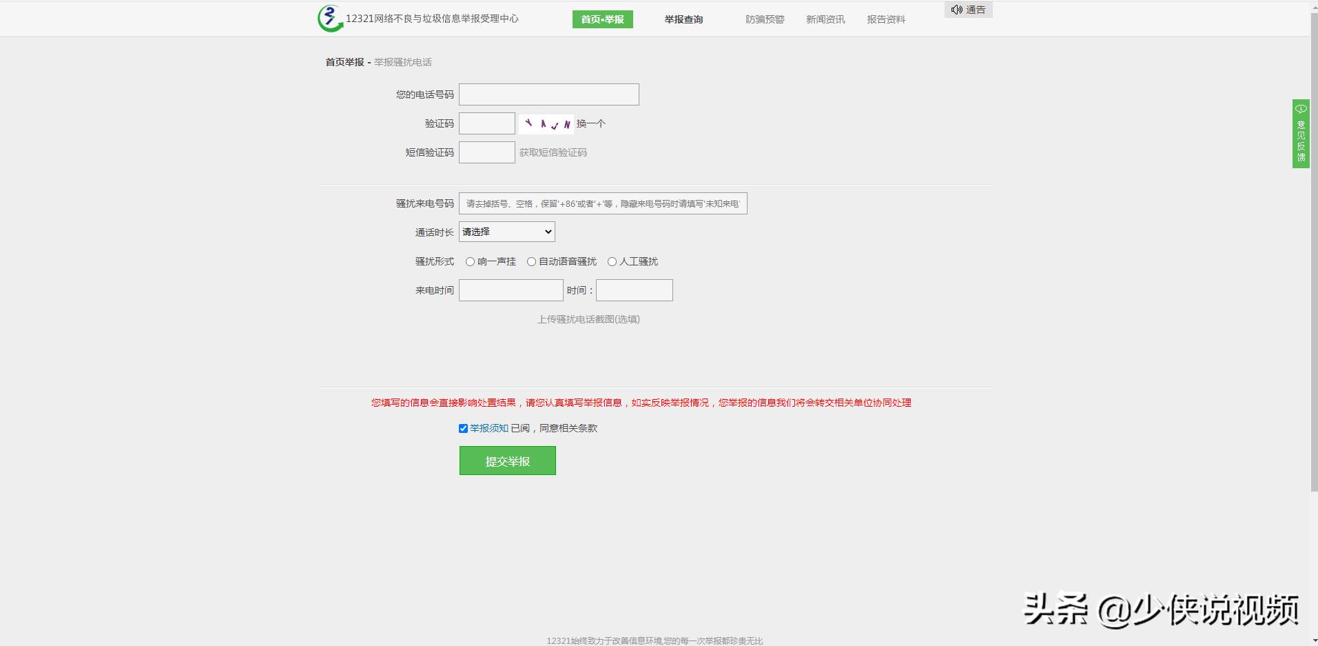 骚扰电话举报页面-举报须知