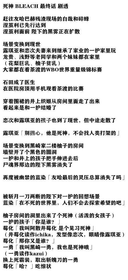 官方宣布将拍死神真人版电影,随后【死神BLEACH】于2016年8月22日发行的《周刊少年JUMP》38号中完结。从剧透的结局中,小编认为这个结局还算完美,不知道你们是不是这样想的呢。恋次和露琪亚一对,一护和井上一对,都修成了正果,似乎结局不错,到底是不是你们心中的理想结局,只有看了才能慢慢体会了。