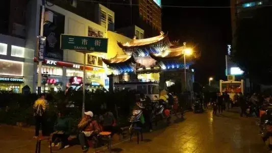 以青年路为中心,到三市街,到金马碧鸡坊,到武成路,到翠湖,有麦当劳、肯德基、必胜客、上岛咖啡等等洋快餐为主的餐厅,这里还有一大堆世界品牌餐饮连锁店,形成了昆明最火爆的市中心美食会聚的云南美食新天地大片区。