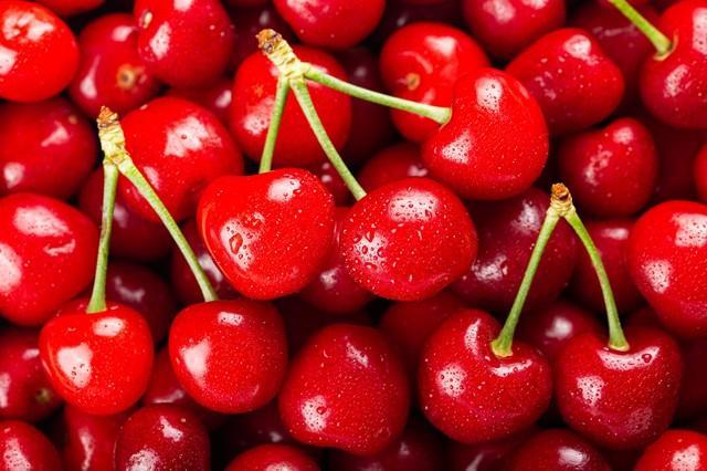 喷了水看上去非常晶莹剔透的樱桃