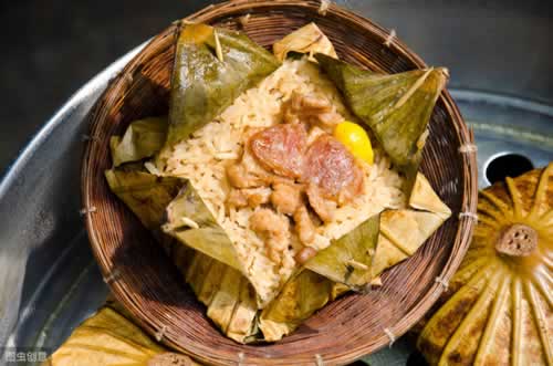 荷叶饭是广东的名小吃,又称荷包饭,是以荷叶包裹米饭和肉馅蒸制而成。人民对荷叶饭十分喜爱,有民谣为证:泮塘十里尽荷塘,妹妹朝夕采摘忙,不摘荷花摘荷叶,荷叶包饭比花香!