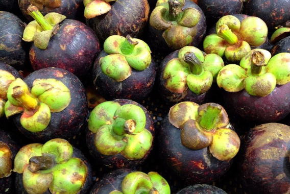 所以,挑选山竹时,最好挑选那种蒂头是绿色的,外壳色泽鲜艳、有光泽的,挑选时可以用手指轻压外壳,外壳不能太硬,也不能太软。还要看看果蒂下面叶瓣的颜色,山竹叶瓣的颜色越绿说明越新鲜,如果颜色变褐色或者变黑,说明这个山竹放置时间太长了,咱们再换一个看看。