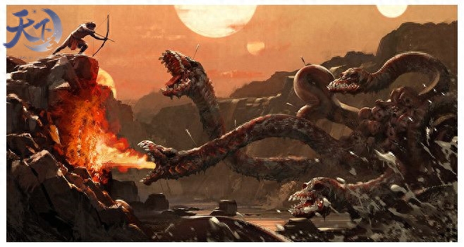 九婴是九头怪兽,既能喷水,又能喷火。