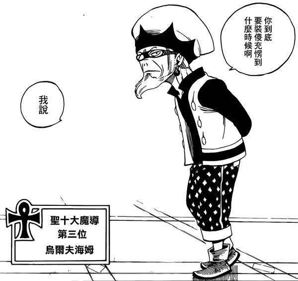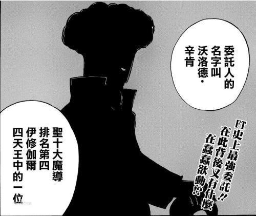 年龄:不明身份:幽鬼行会会长魔法:暗系魔法喜欢的东西:权力金钱讨厌的东西:妖精的尾巴简介:原圣十大魔导士的一员,幽鬼行会会长,曾领导国内最强大的行会,后因嫉妒妖精的尾巴抢走其行会生意,故与后者开战,最后战败并被剥夺圣十大魔导士荣誉。