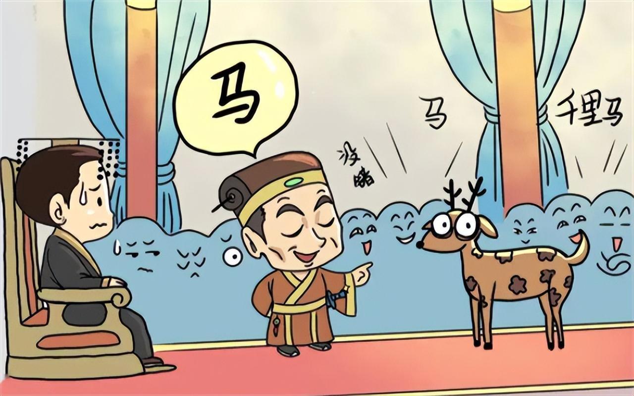 一次上早朝时,赵高命人牵来一只鹿,献给胡亥。但他嘴里却说:“这是一匹千里马,我特意寻来献给陛下。”胡亥乐了,笑道:“丞相,你是不是老糊涂了?这明明是一只鹿,怎么是一匹马呢?”赵高没有回答胡亥的问话,而是问满朝文武:“你们告诉陛下,这是鹿还是马?”