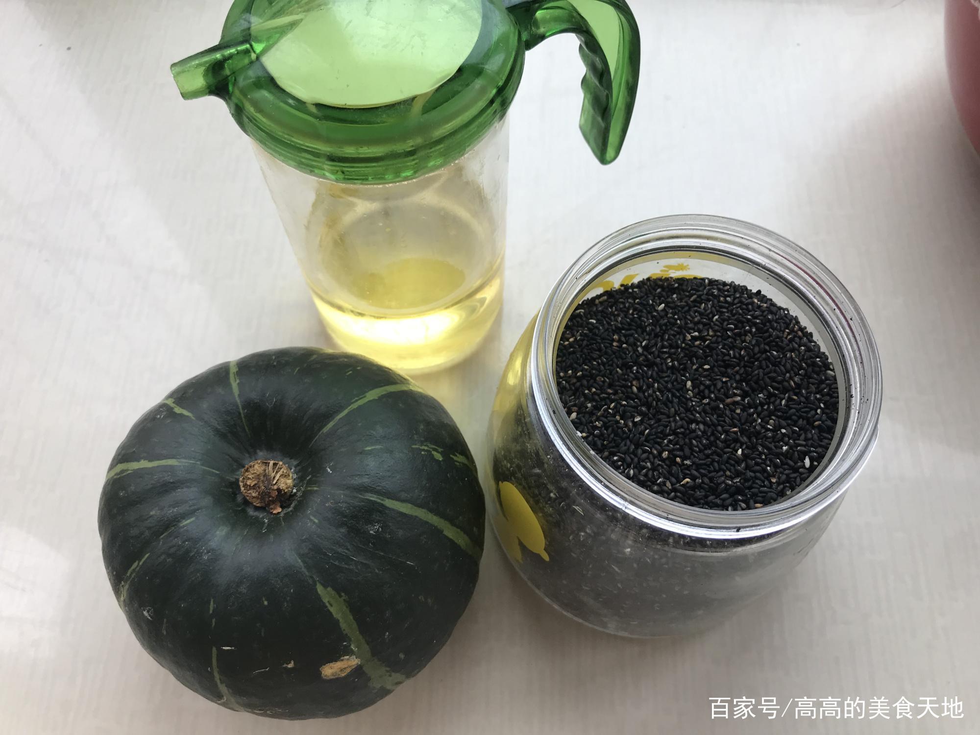 食材用料:贝贝南瓜1个、黑芝麻适量、玉米油适量、桂花蜂蜜适量