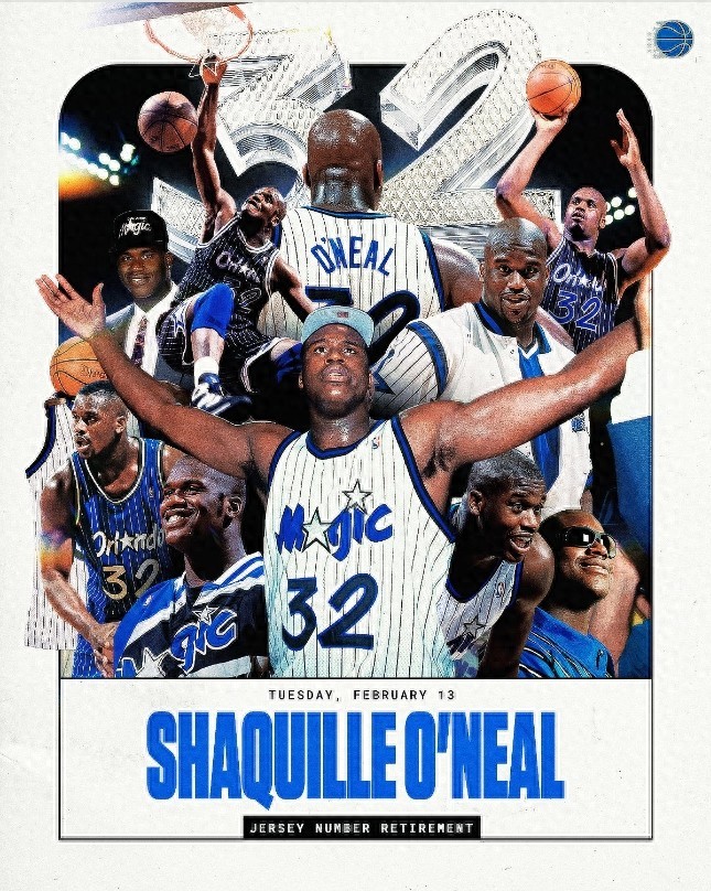 魔术官方宣布将在2024年2月14日退役沙奎尔-奥尼尔的32号球衣。