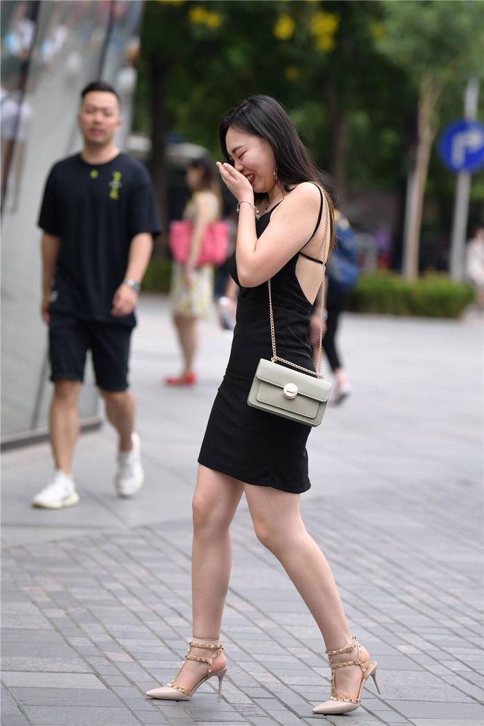 精致的美女,也要知道怎么搭配更好一些,要学会搭配,这位美女选择一字带细跟凉鞋,6厘米的细跟设计,绕踝的一字带,还有蝴蝶结的装饰,非常舒服的搭配,走路非常优雅自然,会搭配的美女,也要知道怎么搭配更好,搭配黑色的连衣短裙,吊带的款式,收腰设计,也很好,裙摆散开,也是很舒服的搭配,当然美女也没了红底鞋的鞋子,虽然没有穿在脚下,依旧感受到美女的消费能力,白色的单肩包,硬质皮设计,立体感很好。
