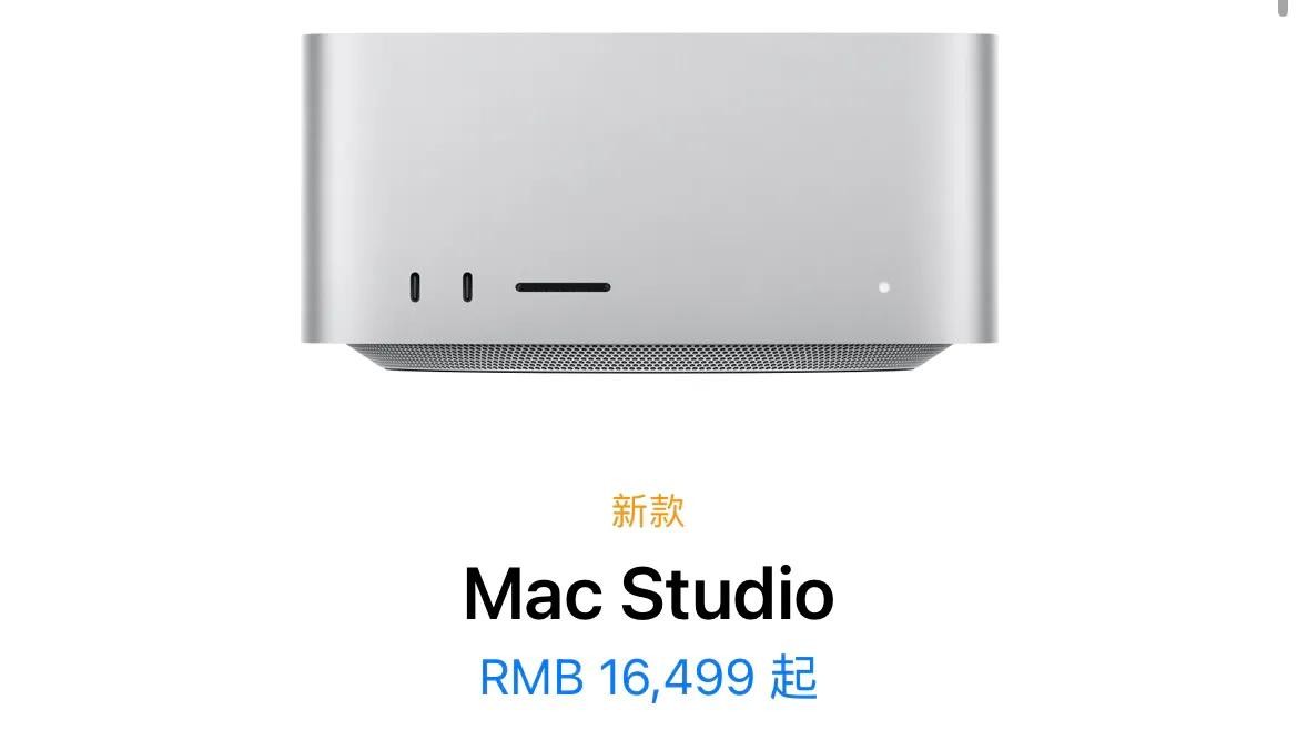 Mac Studio方面,搭载M2 MAX芯片,价格16499元起,搭载M2 Ultra芯片,价格32999元起。
