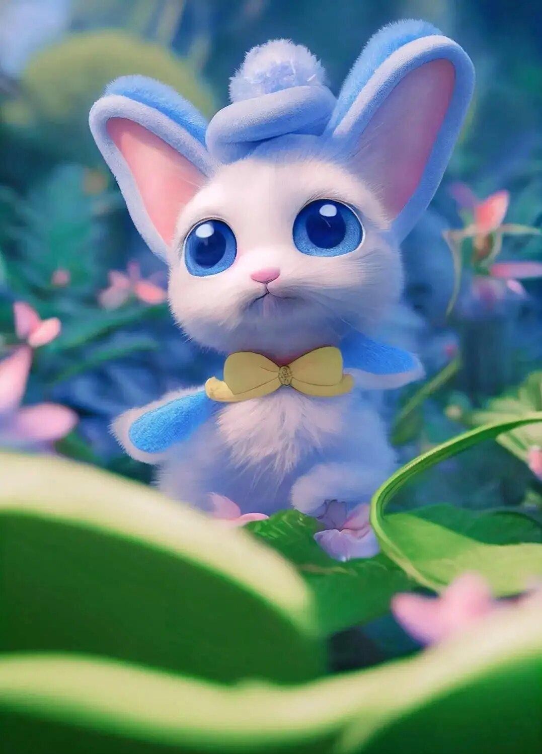 可爱的小兔子壁纸系列三,灰蓝色系列,48张无水印