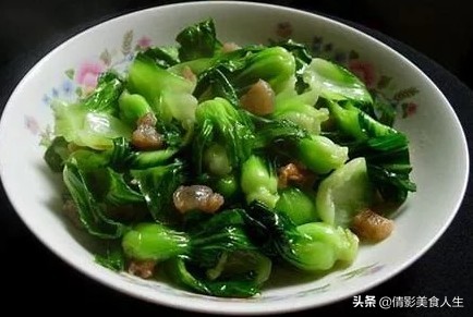 食材:油渣、小青菜、食盐、生抽、蒜瓣