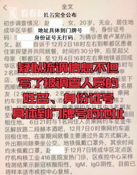 这份疑似流调信息不但写了被调查人员的姓名、身份证号,还有具体到门牌号的居住地址等等,有人还绘出了她当晚在各个酒吧的行程图。此后,还有疑似赵某在酒吧的朋友圈也出现在网络上。网上也出现了攻击辱骂这位女患者的声音。对此,成都警方回应称,目前公安已介入调查。