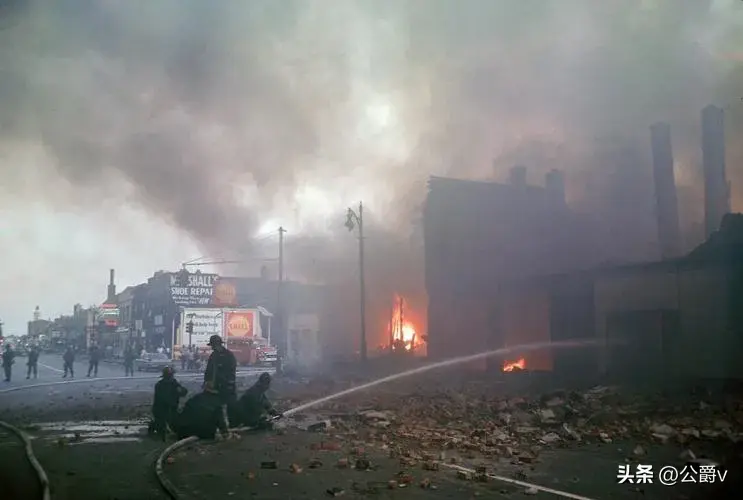 骚乱发生后,平时处于社会底层的广大黑人,为了发泄自己的不满,四处打砸抢,到处焚烧房屋。