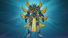 拥有十张黄金色之翼,炽天使型数码兽,作为天使型数码兽中位置最高等的存在,统治着全部天使型数码兽。其实夏目君觉得就是说说而已,因为战斗力实在不适应当时的体系。必杀技是向对手发射七个超热光球的"七重天堂",以及用自己生命为代价,引起大爆炸的最大奥义"言诏"。但初次登场就被阿卡迪兽吸收力量而退化,真是出场没活跃就吃瘪。