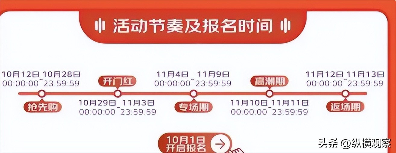 京东双十一活动:抢先购:10月14日20:00至10月28日23:59开门红:10月31日20:00至11月3日23:59专场期:11月4日00:00至11月9日23:59高潮期:11月10日20:00至11月11日23:59返场期:11月12日00:00至11月13日23:59
