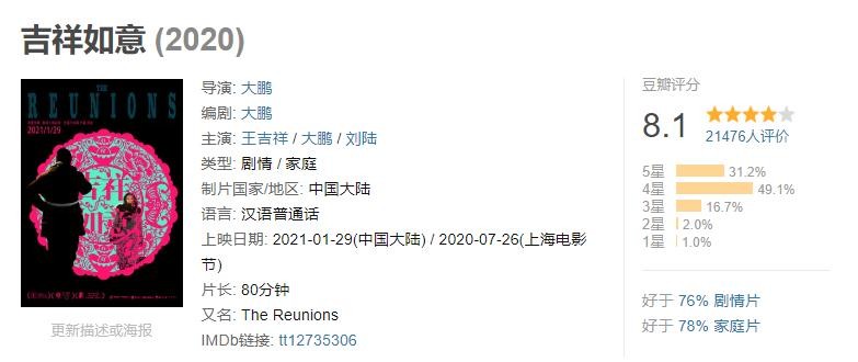 截至2月1日9时,《吉祥如意》在豆瓣评分为8.1分