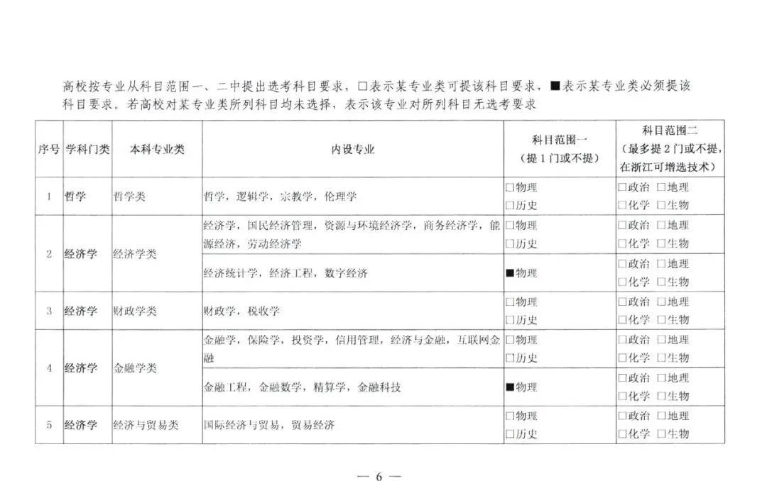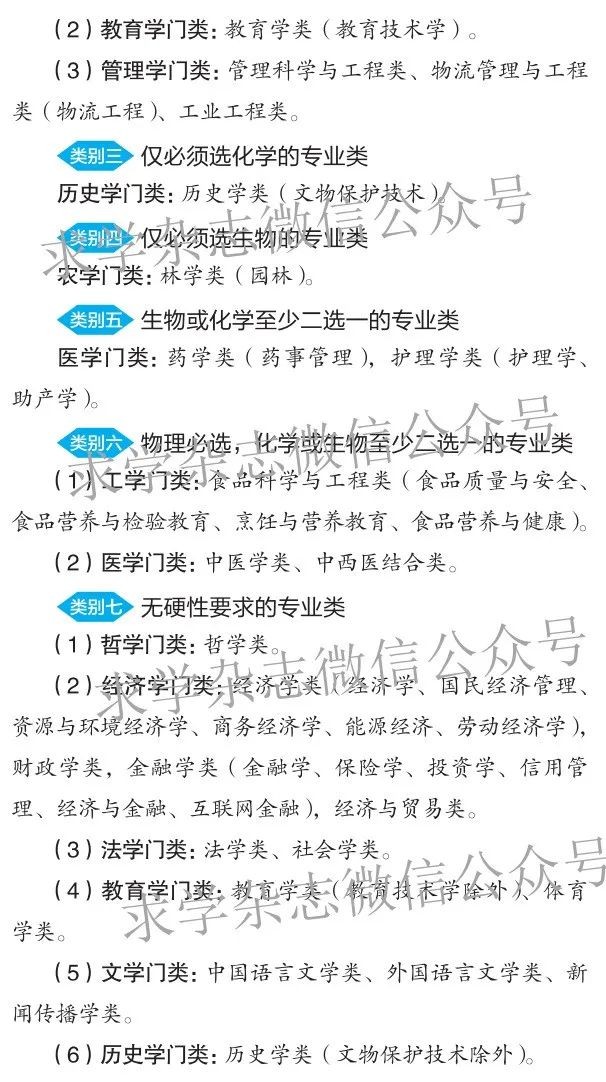 说明:因篇幅有限,以下分类中,如果“通用版指引”对整个本科专业类内各个专业的选科要求是一致的,则只列出该本科专业类,不具体到专业;如果不一致,则在该本科专业类后括号备注符合分类要求的专业。