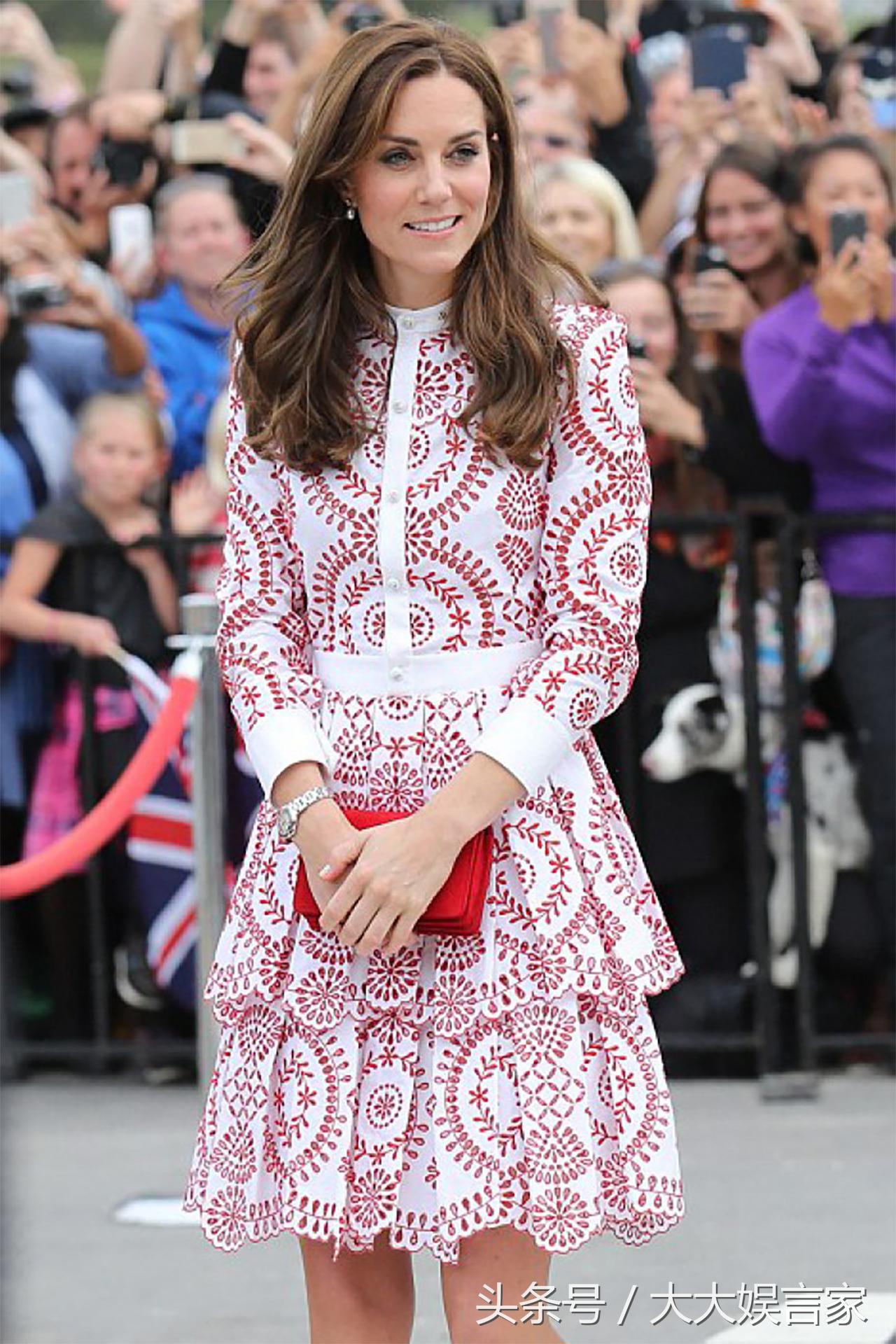 但如果是选择这种蛋糕裙,再配上凯特王妃1米75的身高,简直是女神。白底红色印花的花纹,让凯特王妃看起来恬静温柔,整个人的气质优雅端庄,非常适合她。再配上大红色的小手包,纤细的手腕露出手表,整个人看起来既高级又不失女人味。